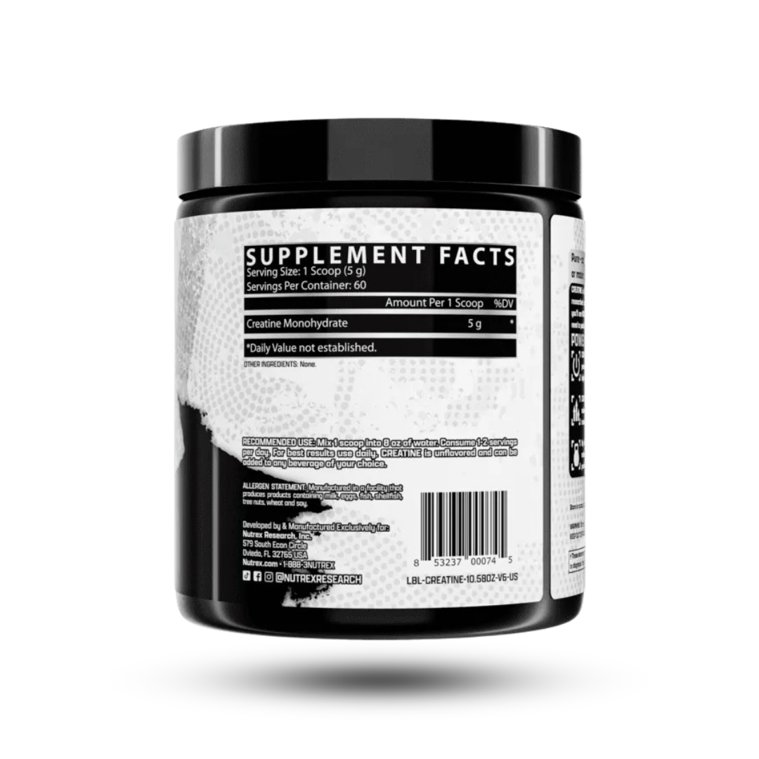 Nutrex Creatine se destaca por ser creatina monohidratada pura. Ayuda a incrementar la masa muscular, potencia y fuerza. Mejora el rendimiento deportivo, la fuerza y el crecimiento de masa muscular magra. Puede ayudar a reducir la fatiga y mejorar el tiempo de recuperación. MAXIMIZA GANANCIAS MUSCULARES.